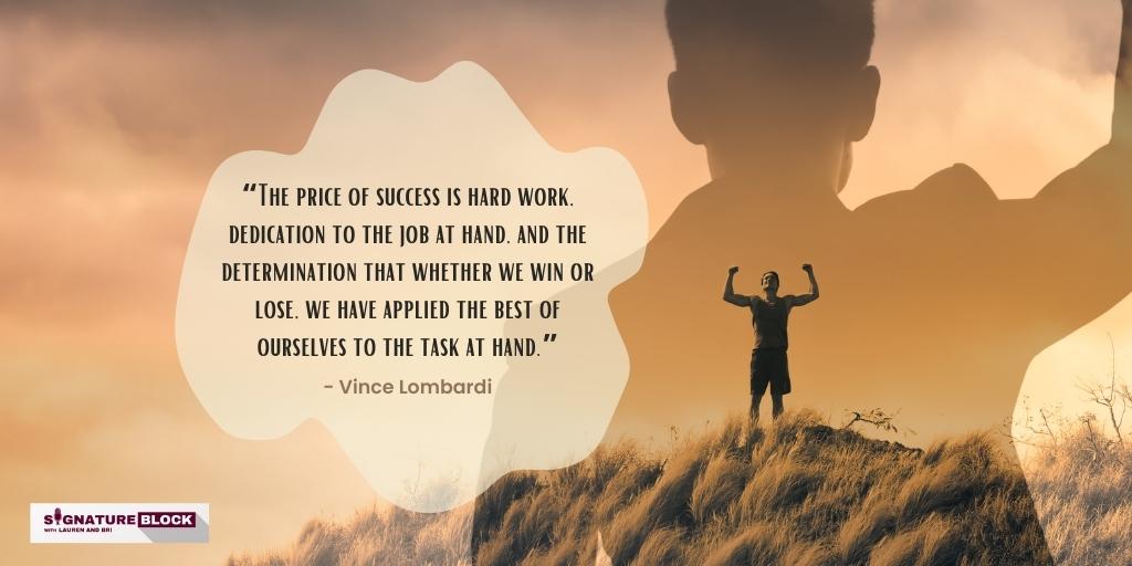 Signature Block With Bri Lauren On Twitter The Price Of Success Is Hard Work Dedication To The Job At Hand And The Determination That Whether We Win Or Lose We Have